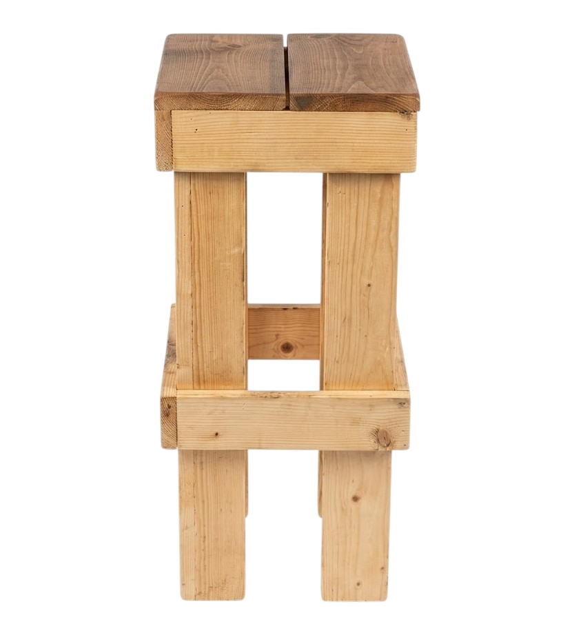 Barkruk van steigerhout, ideaal voor bruiloften, winterfeesten of andere sfeervolle gelegenheden. Perfect te combineren met de steigerhouten statafels.