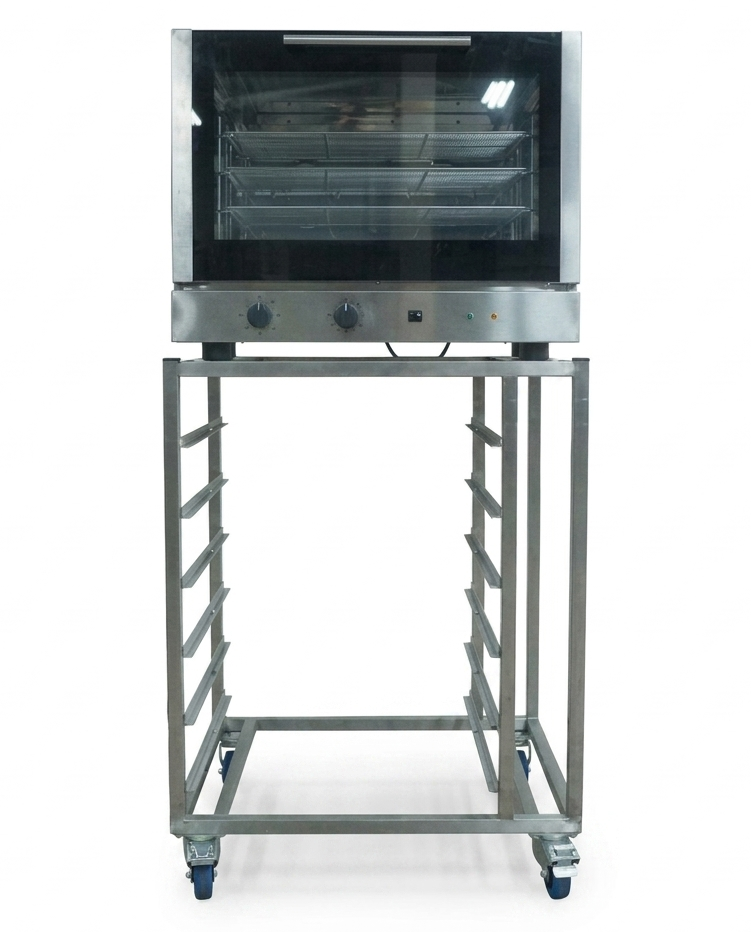 Heteluchtoven 1/1 GN 4 roosters, op onderstel