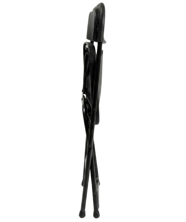 De klapstoel is snel en eenvoudig te plaatsen. Hij is voorzien van een zwarte zitting met een zwart onderstel en kan desgewenst met een koppelstuk worden gekoppeld.