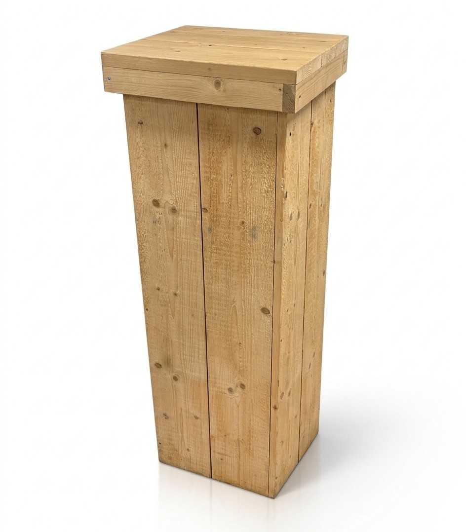 Steigerhouten zuil om een bloemstuk of vaas op te zetten.